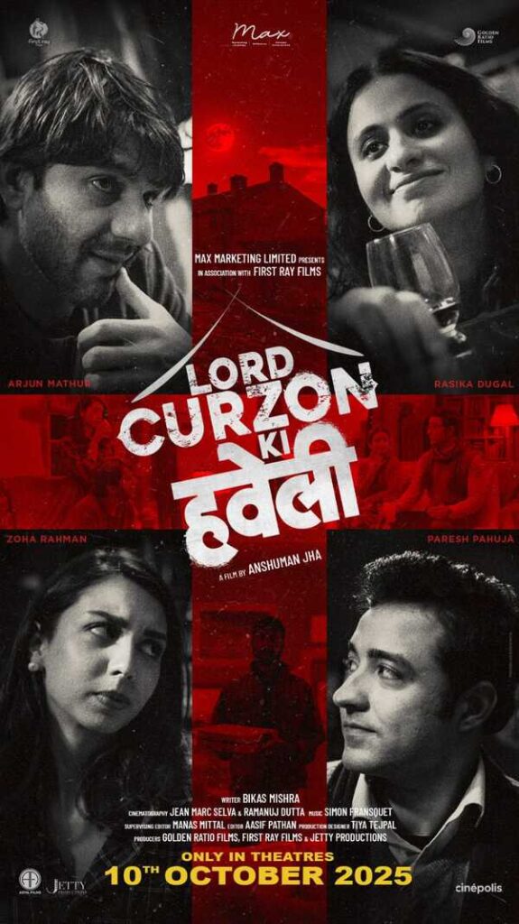 The wait is finally over. Lord Curzon Ki Haveli—a razor-sharp black comedy thriller with a wicked twist—is all set to hit cinemas on 10th October. Marking the directorial debut of acclaimed actor Anshuman Jha, the film features an ensemble cast including Arjun Mathur, Rasika Dugal, Tanmay Dhanania, and Paresh Pahuja in pivotal roles.